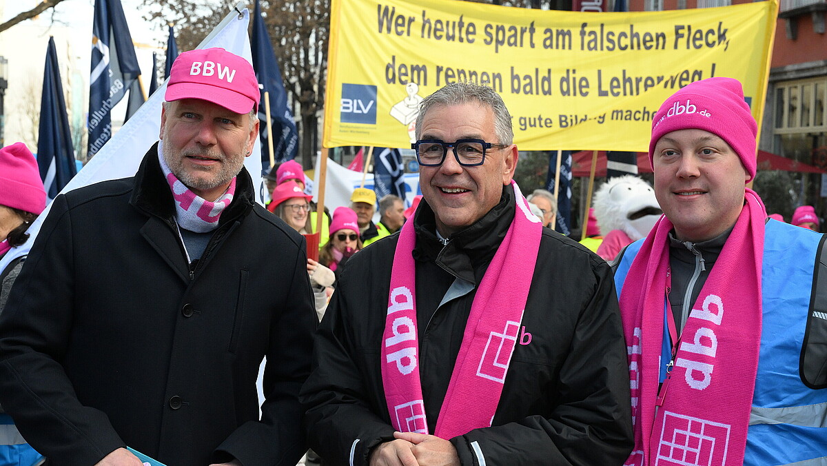 Der dbb und der Beamtenbund und Tarifunion Baden-Württemberg (BBW) hatten die Beschäftigten des öffentlichen Dienstes in Baden-Württemberg zu einem landesweiten Warnstreik aufgerufen. 4.800 Demonstrierende zogen am Mittag durch die Landeshauptstadt. Der BBW-Landesvorsitzende Kai Rosenberger unterstrich: „Ob Lehrkräfte, Pflegekräfte oder Polizei – die Beschäftigten des öffentlichen Dienstes sind die Grundlage für einen handlungsfähigen Staat. Arbeitgebende, die in den Verhandlungen blockieren, blockieren die Funktionsfähigkeit unseres Landes!“